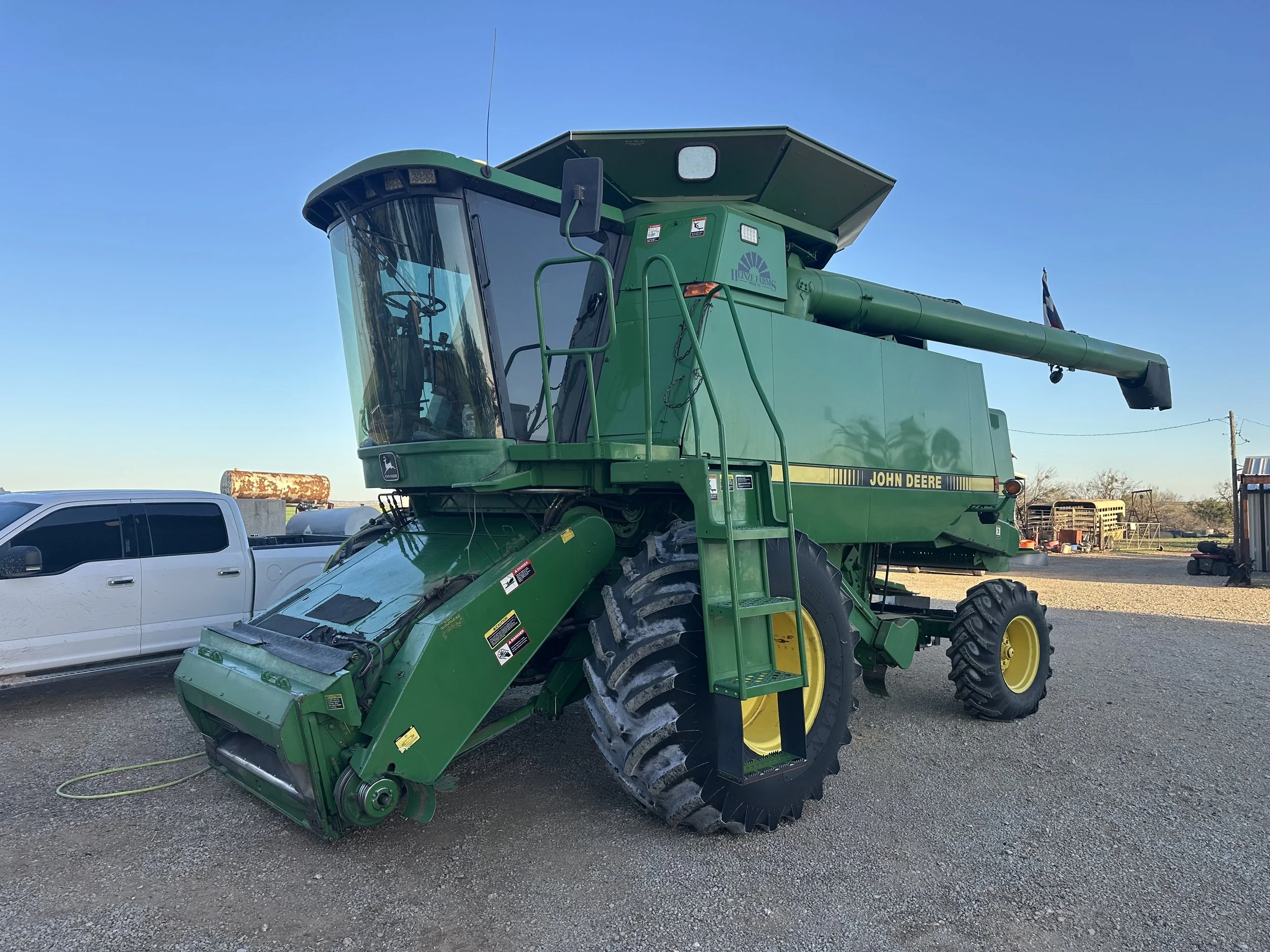 Got the combine and header dug out of the barns. Spent some time looking over machines fixing any issues and doing service work. Also, got the hopper bottom out of the barn at Tennyson and back to HQ.